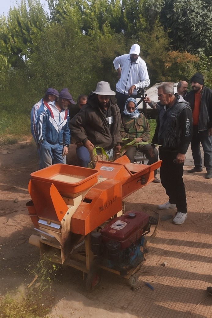 يهدف هذا التدخل إلى تعزيز سبل العيش المستدامة من خلال إدارة مخلفات المحاصيل لإنتاج الكمبوست (الأسمدة العضوية) وتوفير علف للماشية. ولتمكين المزارعين من الاستفادة من مخلفات المحاصيل والأشجار المثمرة، قام المشروع بتوزيع 12 آلة فرم مخلفات على مجموعات منظّمة من المزارعين ومربّي الماشية، تم اختيارهم وفقًا لمواقعهم الجغرافية واحتياجاتهم.