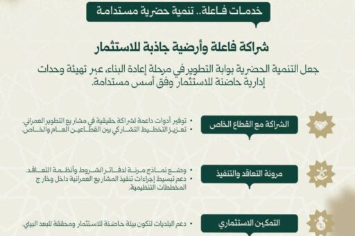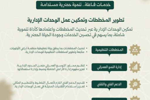 تحت شعار “بوابة الاستثمار والبناء” تقود مديرية المخططات والتنمية الحضرية مسار التحول العمراني عبر تحديث المخططات وتمكين البلديات، لخلق بيئة مستدامة تدعم التعافي الوطني وتجذب الاستثمارات النوعية؛ انسجاماً مع رؤية 2030.
