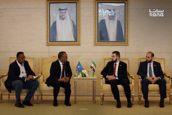 وعلى هامش منتدى قطر العقاري الثالث التقى وزير الإدارة المحلية والبيئة محمد عنجراني وزير الأشغال العامة وإعادة الإعمار والإسكان في جمهورية الصومال علمي محمود نور.