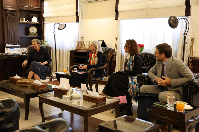بحث اليوم وزير الإدارة المحلية والبيئة المهندس محمد عنجراني مع رئيسة البعثة السويسرية بدمشق ماريون وايخلت كروبسكي سبل التعاون الثنائي في مجال الإدارة المحلية، وتبادل الخبرات والمعارف.