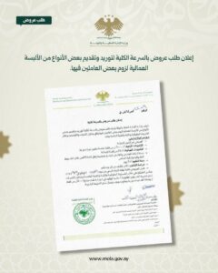 ترغب وزارة الإدارة المحلية والبيئة بإجراء طلب عروض بالسرعة الكلية لتوريد وتقديم